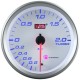 D'un design se mariant avec les manos Blancs Electroniques, il est d'un diametre 80 mm, ce qui est équivalent au mano de pression de turbo ORECA, il permet une lecture tres rapide et tres précise.